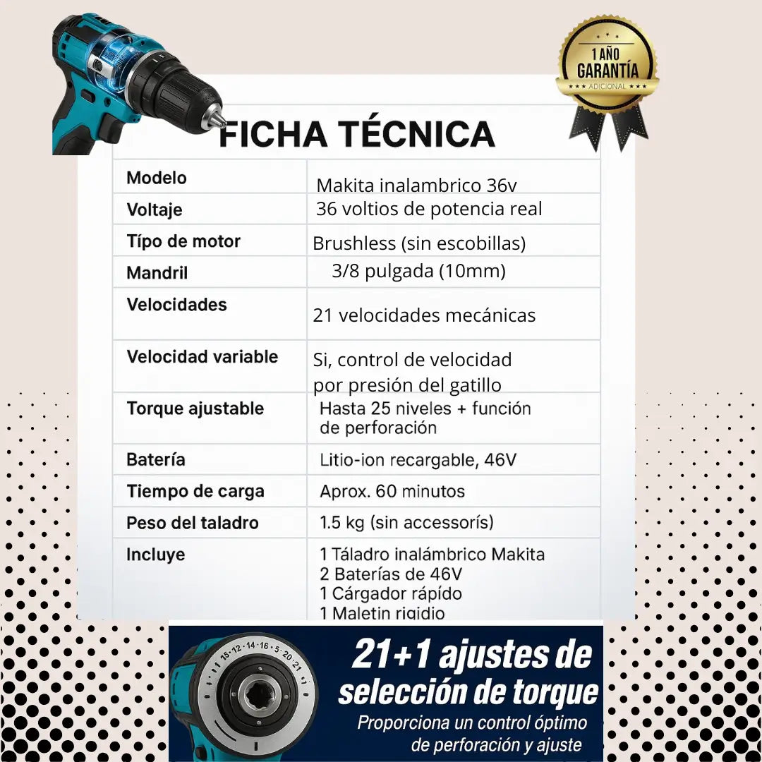 Taladro Inalámbrico Makita 36V con toda la potencia y comodidad que necesitas, y además recibe ¡GRATIS una Polichadora profesional!