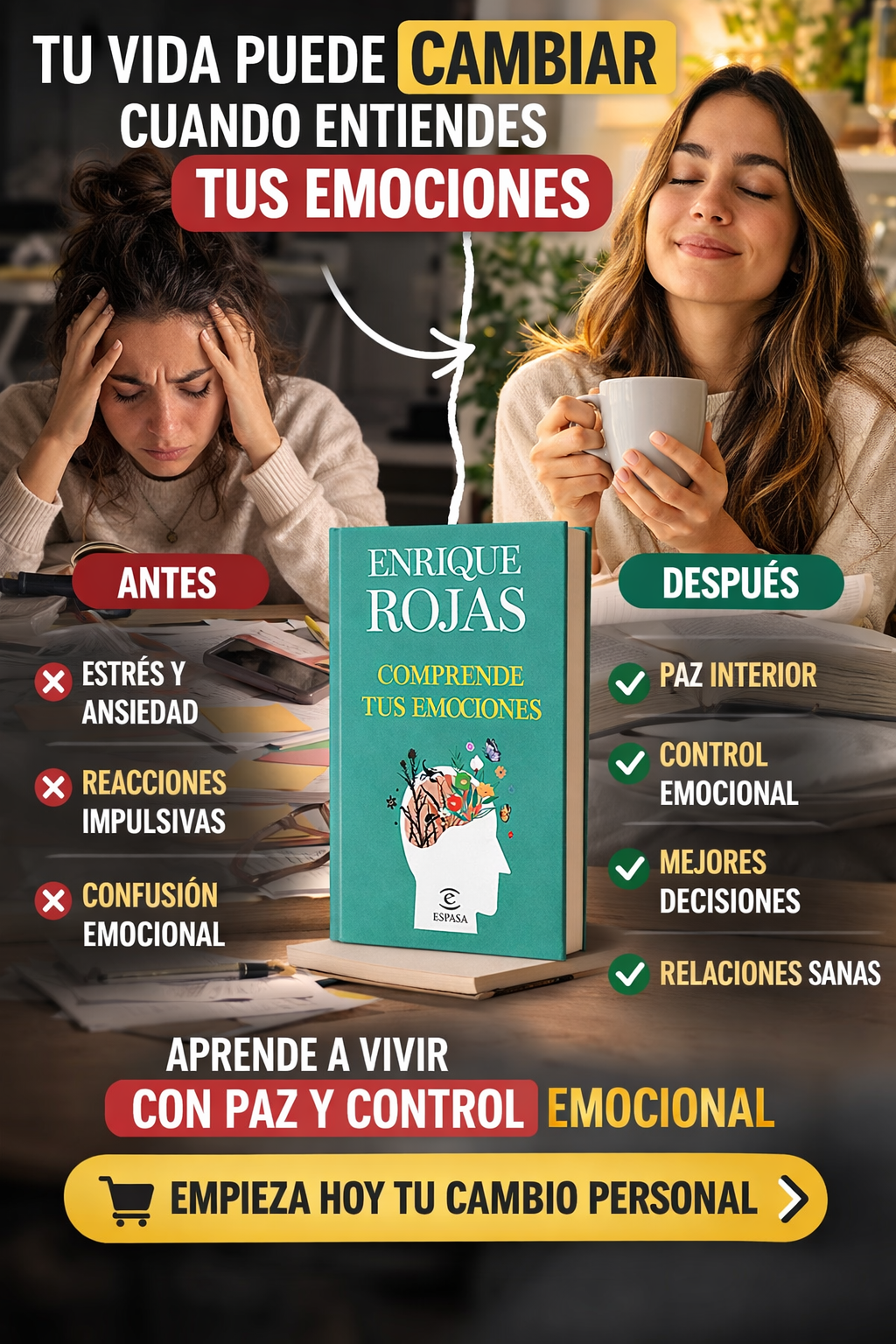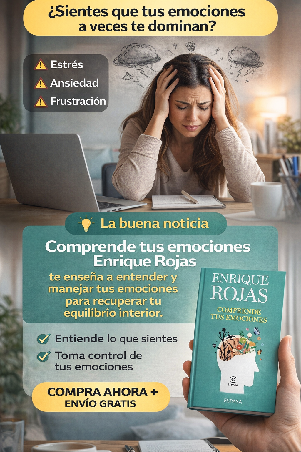 📘 Comprende tus emociones – Enrique Rojas. Aprende a entender lo que sientes y a tomar el control de tus emociones. Este libro te guía paso a paso para manejar el estrés, la ansiedad y las reacciones impulsivas, ayudándote a vivir con más equilibrio, claridad mental y paz interior. Una lectura práctica que puede transformar la forma en que enfrentas tu vida y tus relaciones.