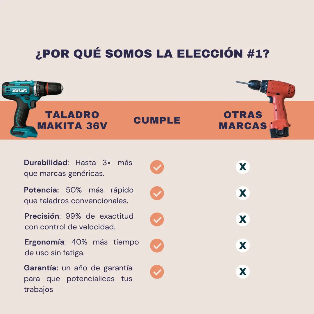 Taladro Makita 36V CAJA AZUL - 3 en 1: Taladro, atornillador y percutor. 🔩